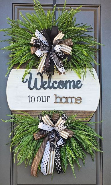 Our Wood Round Door Wreaths are a stylish and modern way to welcome guests into your home. Each wreath is crafted from a wood base that is stained, painted, and personalized with a welcoming message. Finished with hand-selected florals and a coordinating bow, these wreaths are both durable and beautiful—perfect for year-round use or seasonal décor. Available in standard sizes, with custom options to fit your door and style.